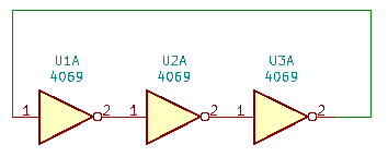 Vous pouvez également réaliser un oscillateur sans réseau RC, à condition d'avoir un nombre impair de portes NON (et plus d'une).