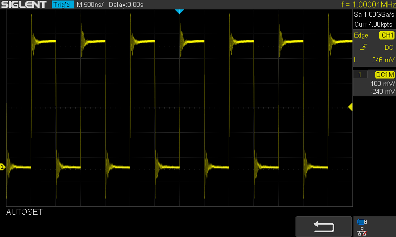 On observe des oscillations en fronts montants ou descendants qui devront être filtrés pour obtenir une onde vraiment propre.