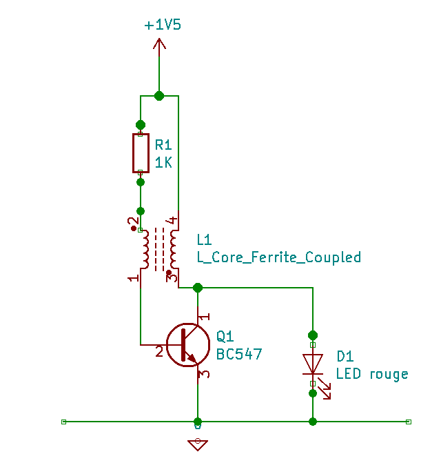 Hello. Bel article. Il faut mettre une résistance même faible 10ohm en série avec la led si on veut quelle vive longtemps. Ce circuit est basé sur une pattern de blocking oscillator. Le rendement est pas top et la pollution électromagnétique EMI générée est importante. On peut mettre une capa dans la base pour baisser un peu la fréquence ce qui améliore le rendement.