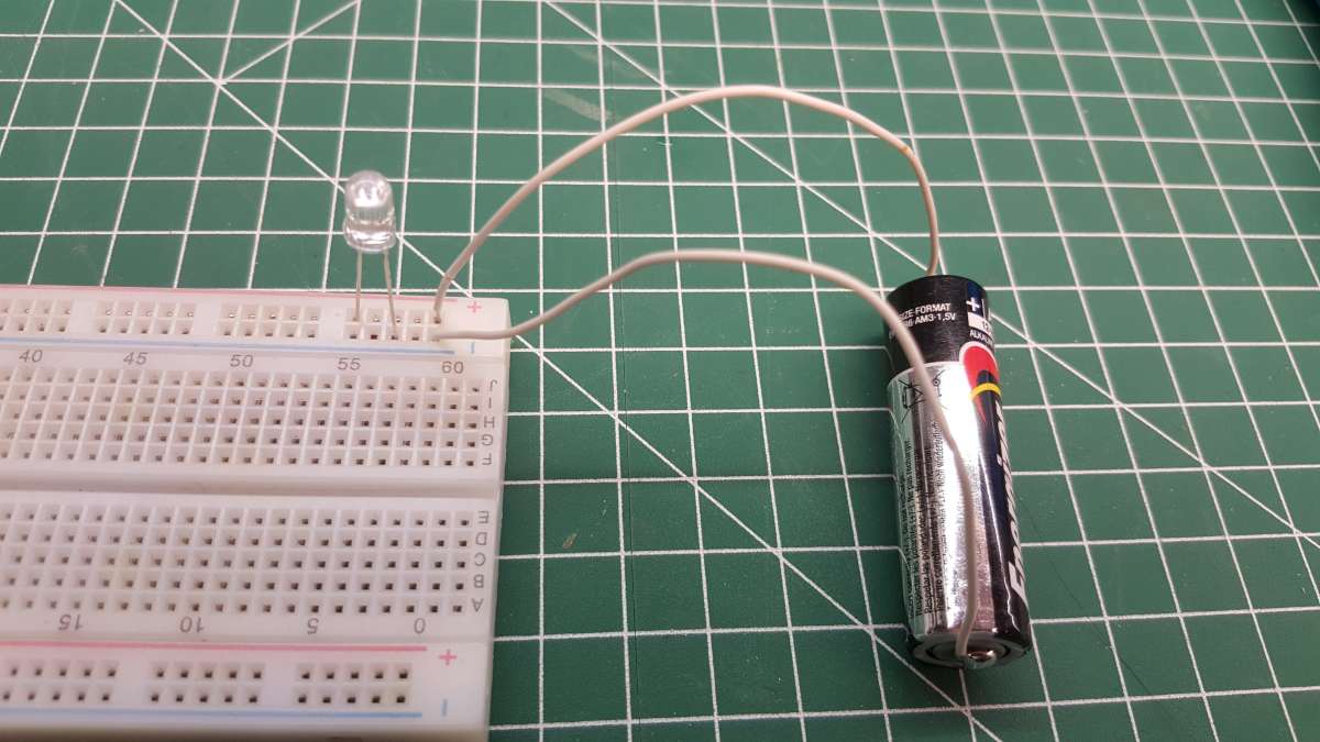 Avant de commencer, on observe qu'une simple pile de 1.5V n'est pas capable de d'allumer une diode LED rouge. En effet, ces leds ont un seuil de l'ordre de 2V.