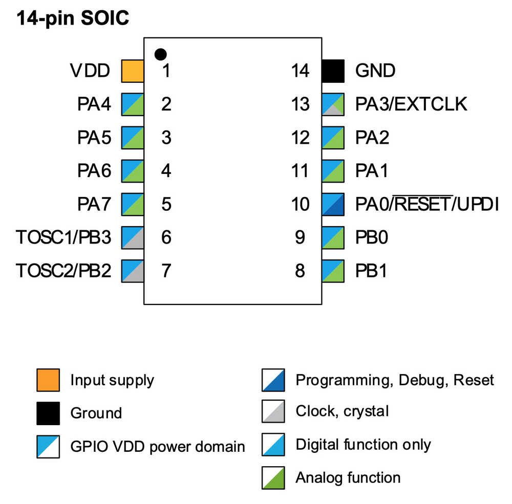 ATtiny est une famille de microcontrôleurs 8 bits fabriqués par Microchip Technology. Je vais dans cet article vous évoquer une rapide mise en oeuvre d'un ATtiny414-N comme exemple.