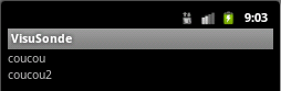 C'est la meilleure solution, ainsi le framework gérera totalement notre interface homme machine (IHM). Les fichiers sont stockés sous res/layout du package. Le système donnera un numéro d'identifiant automatiquement qui sera définit dans la ressource R, et qui correspond à la variable R.layout.visusondelayout. On créé un fichier main.xml tel que:Nous avons vu dans le chapitre précédent comment associer l'interface et l'activité par la commande :