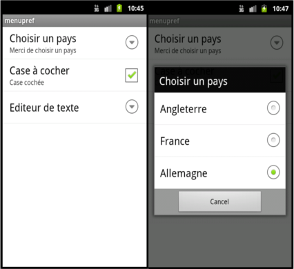 Android : Les menus de préférences
