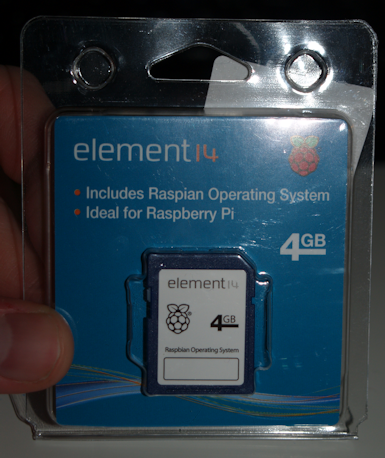De la même façon, j'ai commandé une carte SD avec l'OS pré-installé. Oui, il faut préciser que cet Operating System est le Raspbian, il s'agit d'une distribution Linux (Debian pour les intimes) que l'on trouve en téléchargement gratuit sur www.raspbian.org. Evidemment, les linuxiens me lanceront des cailloux pour tant de facilité, mais je me suis promis de l'installer sur une carte à la mimine plus tard, pour l'heure je préfère commencer avec une config clé en main. D'autant que j'ai entrevue deux articles de (l'excellent) Christophe Blaess dans ma revue préférée Linux magazine dont le sujet est de faire un full install sur le raspberry, même si je m’inquiète de l'install des pilotes dédiés de cette plateforme... On verra après!