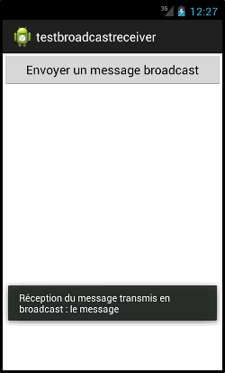 L'exemple ci-dessous propose une solution pour créer un Broadcast Receiver qui affieche les messages receptionnés.