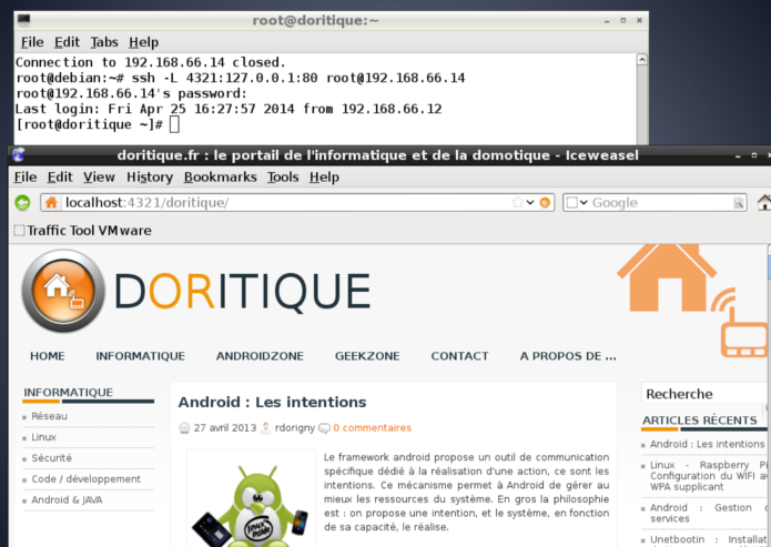 Voyons comment créer un tunnel entre deux stations linux. Il y a globalement trois méthodes:Mais concrètement, comment faire un tunnel entre deux stations Linux? Tout d'abord, il faut activer le service sshd sur vos deux stations par la commande service sshd start. Prenons l'exemple, d'un serveur web sous Linux et d'une station cliente Linux, pour créer un tunnel il suffit de taper la commande au format ci dessous: