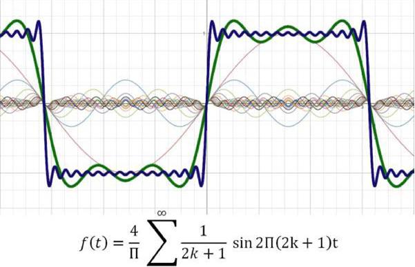 Donc dans le domaine spectral, le signal résultant du produit entre le signal utile et un signal carré sera un ensemble d'harmoniques. Il faudra filtrer précisément celle qui nous intéresse.